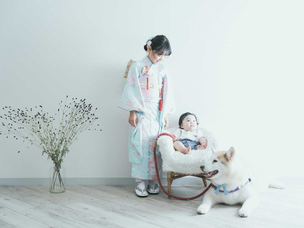 赤ちゃんの頃から何度も撮影させていただいていたまつりちゃん♡︎弟のうい君への優しい眼差しも、愛犬ぎんちゃんとのやり取りも、ずいぶんお姉さんになったな〜としみじみしちゃいました。︎7歳の七五三おめでとう!!